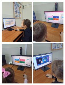 Uczniowie klas I–III uczęszczający do świetlicy szkolnej biorą udział w zajęciach komputerowych, podczas których rozwijają swoje umiejętności cyfrowe w przyjazny i dostosowany do wieku sposób.
