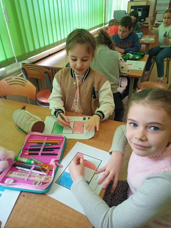 Na początku dzieci uczestniczyły w krótkiej rozmowie na temat różnorodnych zwierząt – zarówno domowych pupili, jak i dzikich gatunków. Następnie uczniowie wzięli udział w zabawie ruchowej, polegającej na naśladowaniu wybranych zwierząt – ich sposobu poruszania się oraz odgłosów.