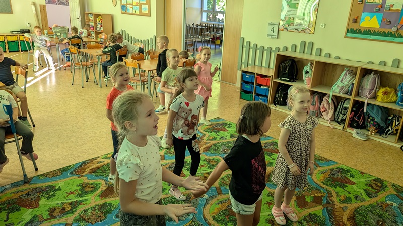 Na parkiecie królują głównie dziewczyny, które z energią i radością wykonują choreografie do ulubionych utworów. Chłopcy – choć nieśmiało –czasem również dają się porwać muzyce i dołączają do wspólnej zabawy.